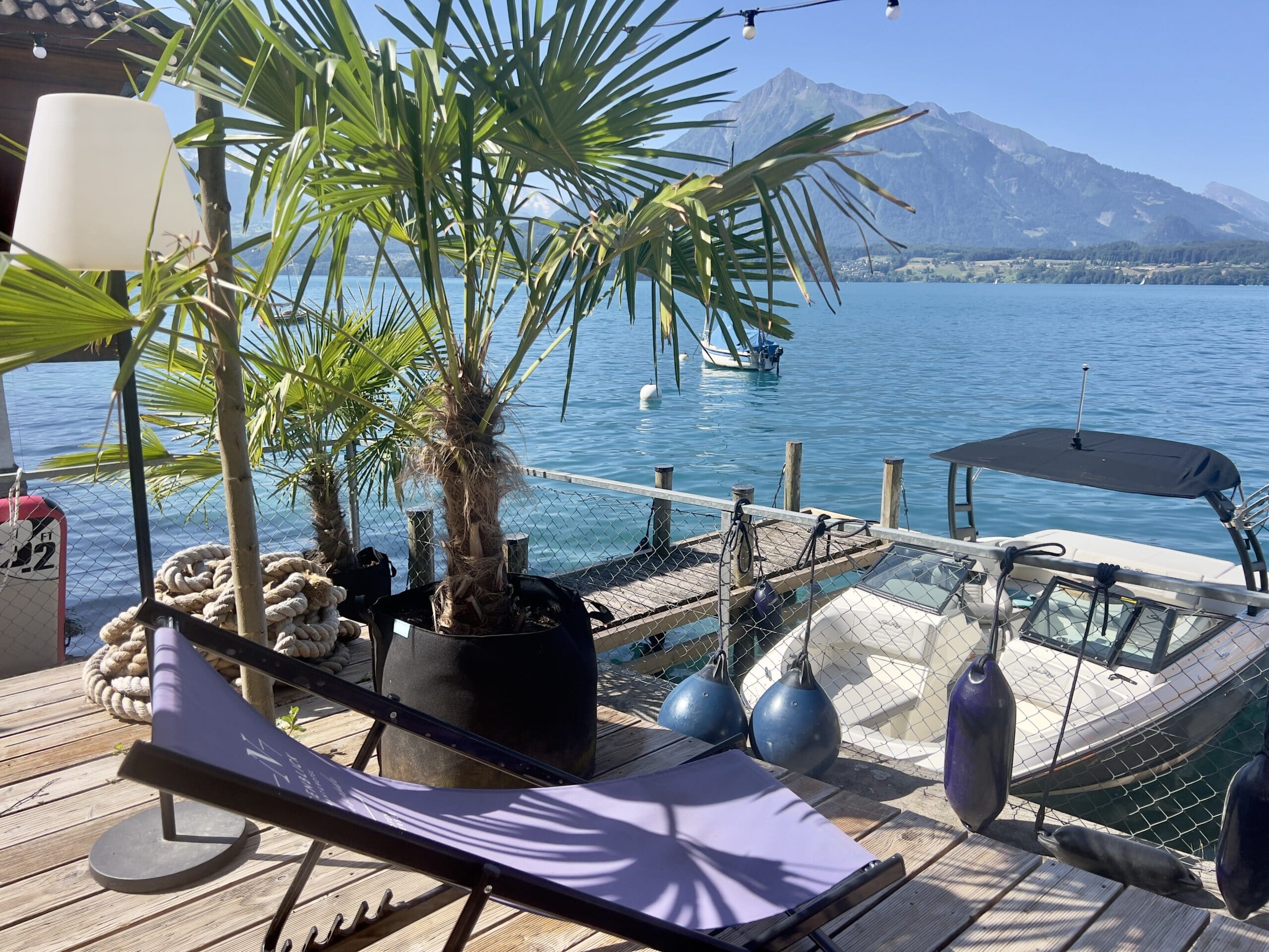 Erleben Sie das Privileg eines direkten und privaten Zugangs zum kristallklaren Thunersee – ein Luxus, den nur wenige Hotels in der Region bieten können. Unser exklusiver Strandbereich erstreckt sich entlang des Seeufers und ist nur wenige Schritte von Ihrem Zimmer entfernt. Hier können Sie auf komfortablen Designerliegen unter schattenspendenden Sonnenschirmen entspannen, während der sanfte Wellengang des Sees für eine beruhigende Klangkulisse sorgt.