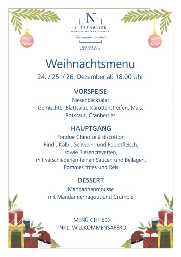 Im Niesenblick feiern wir Weihnachten ohne Hektik – mit gutem Essen, einem Glas Wein und einer warmen, herzlichen Atmosphäre.